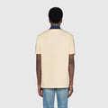 A distinctive detail of the Cruise 2020 collection, the Interlocking G stripe runs down the sleeves of this off-white stretch cotton piquet polo, with blue contrast collar. Reminiscent of logo tapes typically found on vintage tracksuits, the side band serves as a sporty play on the historical Gucci logo.