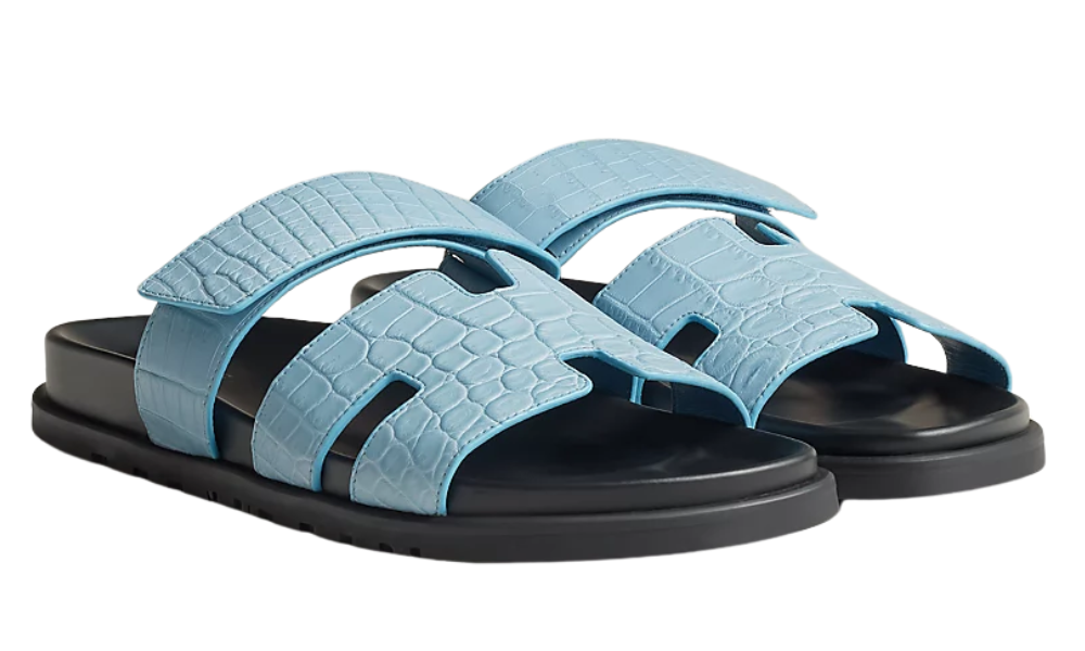 Hermes Calfskin Sandals Crocodile Skin "Bleu Cameo"