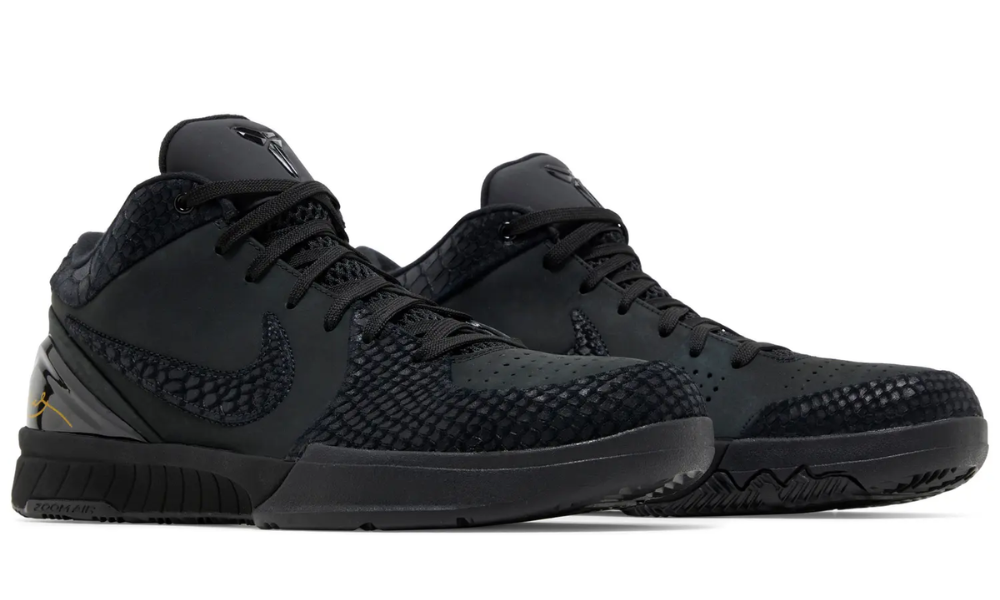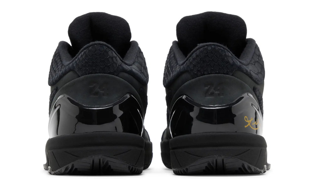 The Nike Zoom Kobe 4 Protro ‘Gift of Mamba’ sports a black nubuck upper with a scaly snakeskin texture throughout the collar, forefoot overlay and Swoosh. Kobe’s signature is scrawled in yellow on the lateral side of the TPU heel counter, delivering the shoe’s lone pop of color. Lightweight cushioning arrives via a matching black Phylon midsole, featuring a large-volume Zoom Air unit in forefoot for on-court responsiveness.